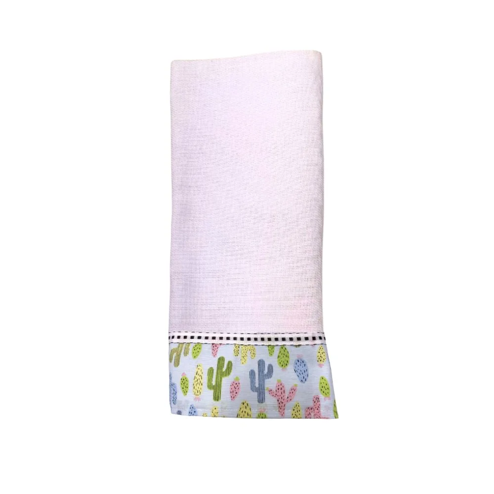 Feito em tecido de qualidade, é altamente absorvente e resistente, perfeito para o dia a dia. O barrado adiciona um toque especial.
